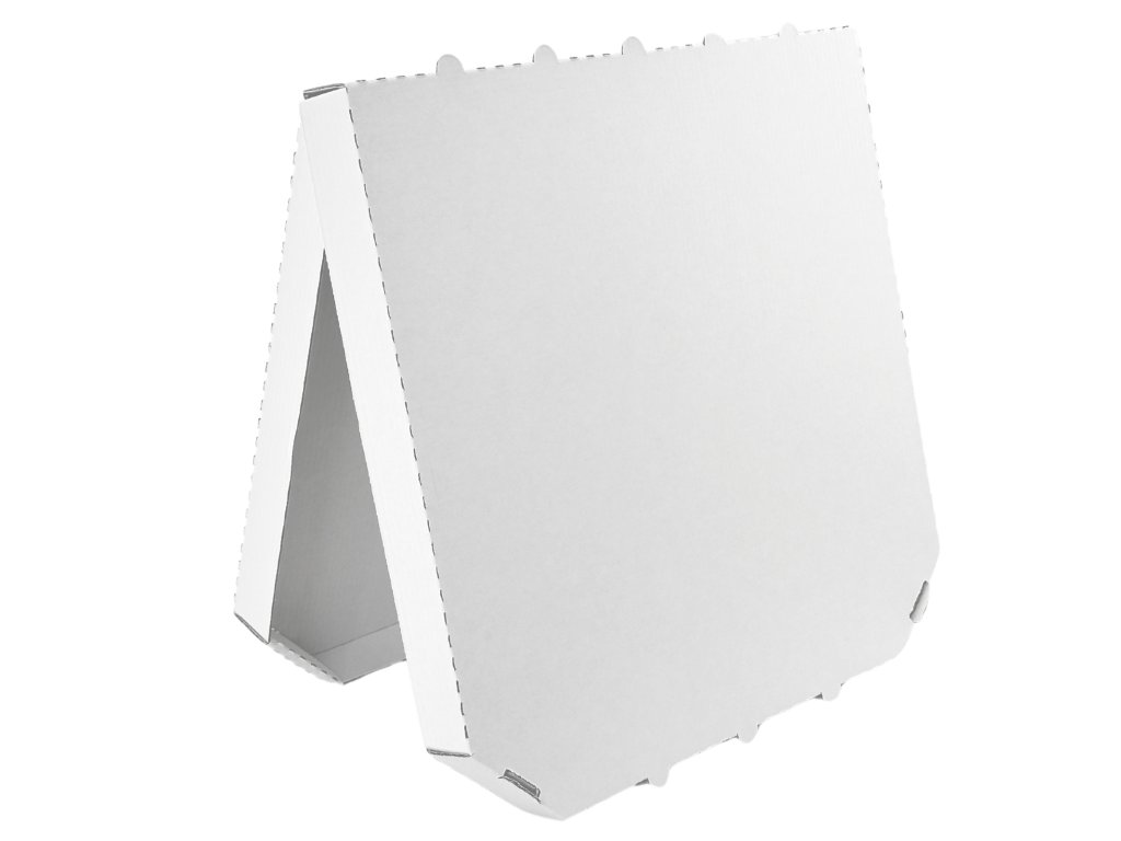 pizza krabice 33x33x3 cm, bílá bez potisku, zkosené hrany (100 ks/balení)